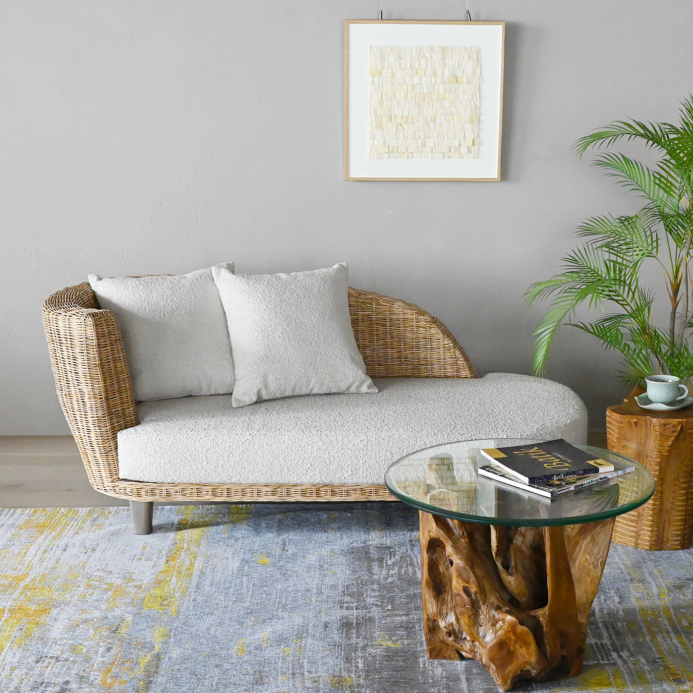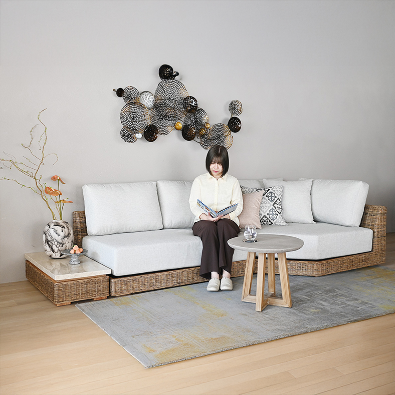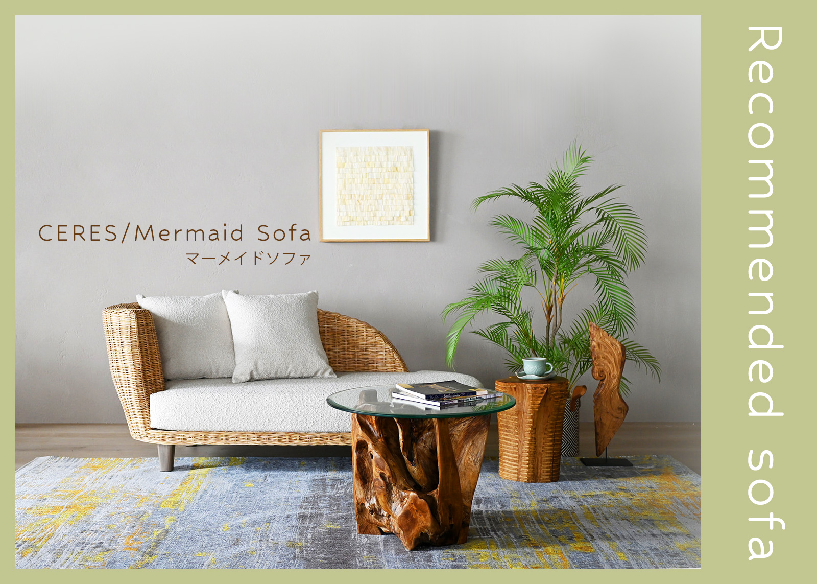 ひとつのフロアに家具も雑貨も並ぶゆとりある空間は、店内を回遊しながら暮らしのイメージをゆっくり膨らませることができます。チーク古材やラタン、ストーンなど自然素材を活かした家具は、手仕事ならではの質感が日常にやさしく寄り添い、照明・アート・テーブルウェア・ファブリックといった多彩なアイテムとのコーディネートを楽しめます。サイズや素材を自由に選べるオーダー家具も対応。理想の空間づくりをお気軽にご相談ください。