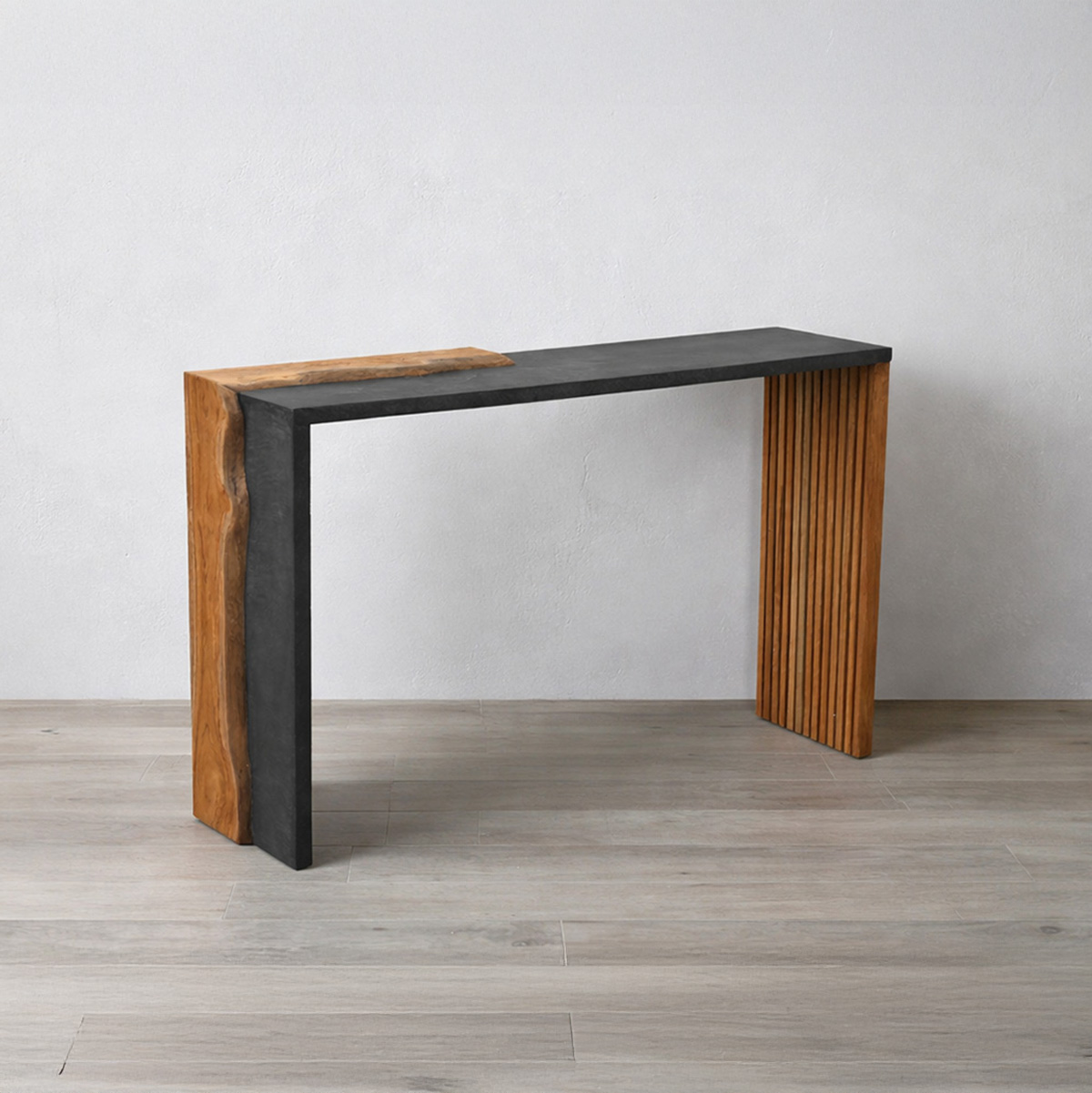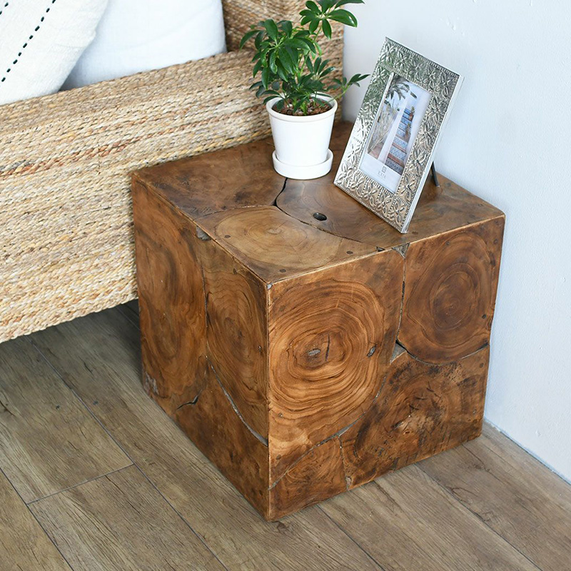 無垢のチーク古材を再利用したCHISTA/ウッドピース ダイニングテーブル (W200)。それぞれ表情の異なる木片を組み合わせた天板は、ひとつとして同じものがなく、使うほどに味わいが深まります。幅200cmのゆとりあるサイズで、家族や友人との団らんを優雅に演出。自然素材のぬくもりが、暮らしを豊かに彩ります。