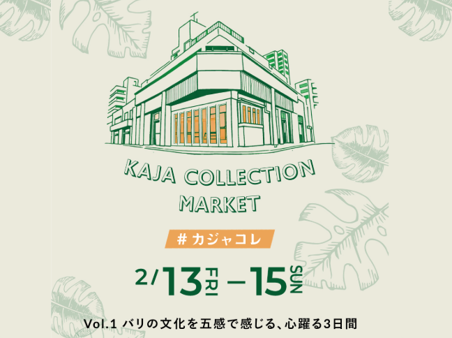 KAJA本店定期イベントのお知らせ 今年からKAJA本店では「KAJA COLLECTION MARKET」という定期開催イベントをスタートします。 記念すべき第一回目のテーマは 【バリの文化を五感で感じる、心躍る3日間...