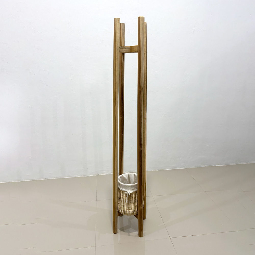 バスケット付きのコートハンガー。