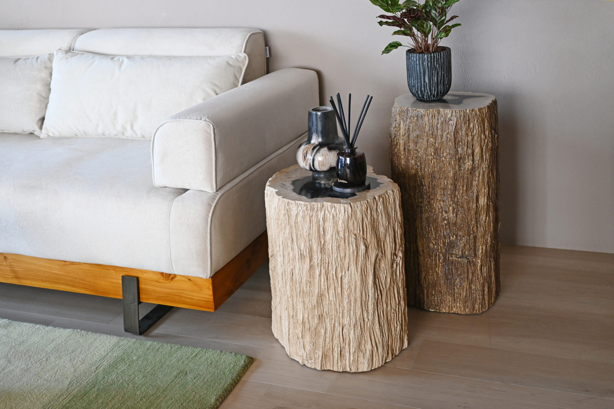 木化石は、家具や装飾品として非常に人気があります。特に、店舗の什器やインテリアのアクセントとして使用されることが多く、存在感があり、自然を感じさせる空間を作り出すことができます。