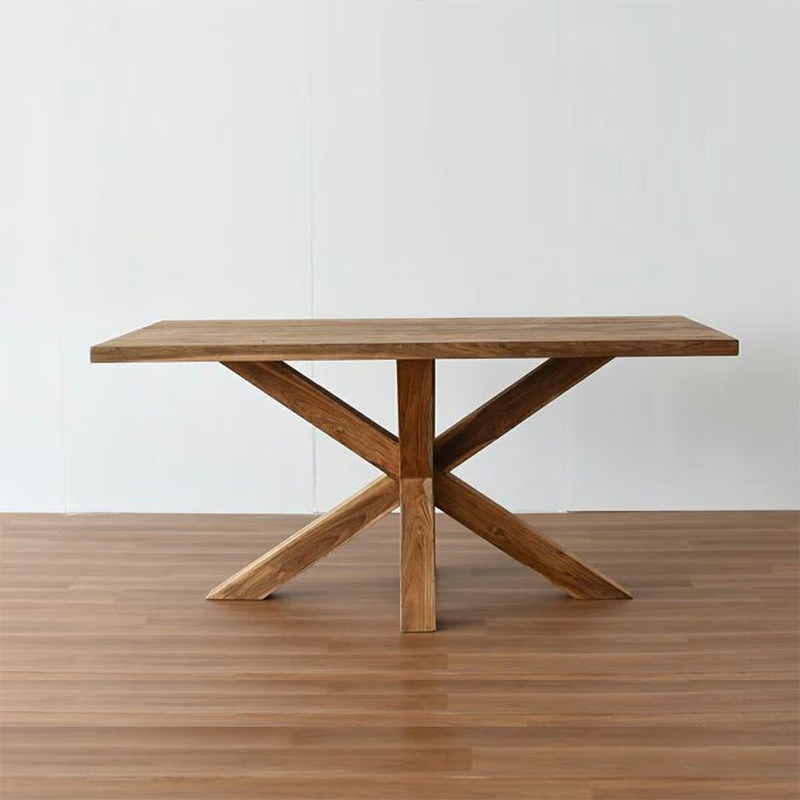 クロスさせた脚のデザインがユニークでスタイリッシュなダイニングテーブル。四隅に脚を設けないデザインにより、足元にゆとりのある空間を実現。立ち座りもスムーズで、4本脚にはないレイアウトが可能なので来客時にも便利です。