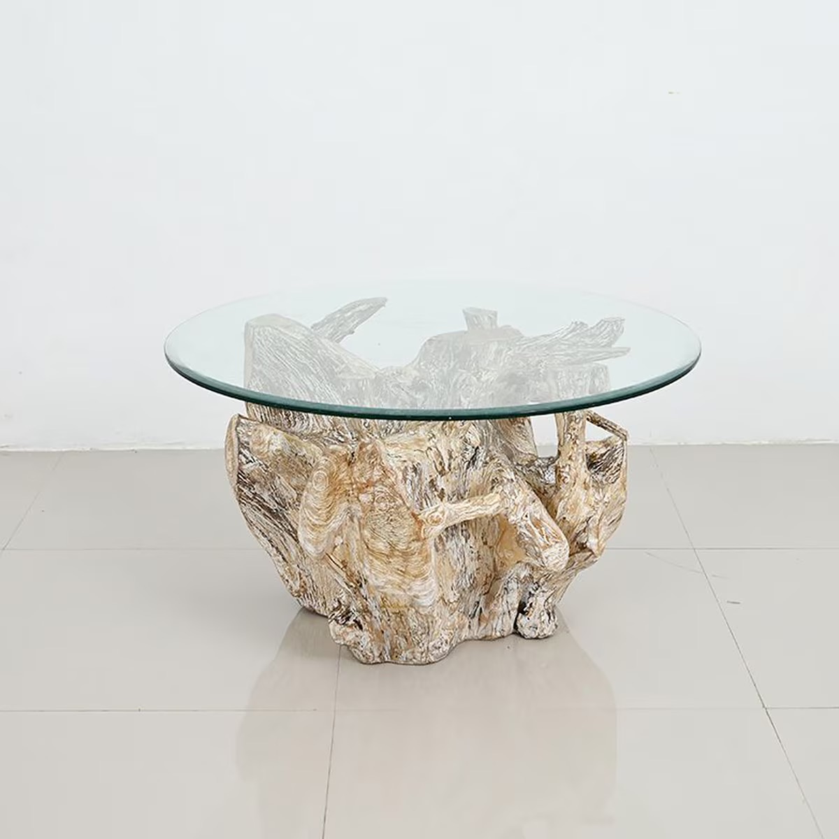 「ルーツテーブル」は、名前のとおり“ROOTS=根”を活かしたデザイン。自然がつくり出した造形美をそのまま取り入れたユニークなローテーブルです。ガラス越しに見える土台は角度によって異なる表情を見せ、リビングに深みと奥行きをプラスします。