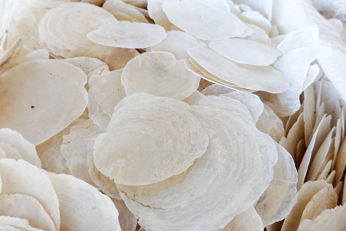 天然の貝殻を一枚一枚貼り合わせて作られるシェルランプは、