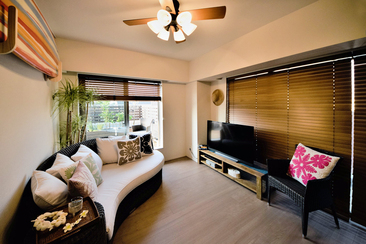 リゾートテイストを楽しむ、憩いのリビングダイニング